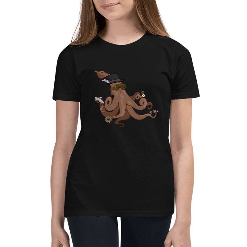 Steampunk Kraken design artwork printed on Youth T-Shirt with latest DTF technology. Our new management team will place serving you. We offer best online shopping experience to our customers with 30 days return and exchange policy. Shop with confidence at T-funny.com