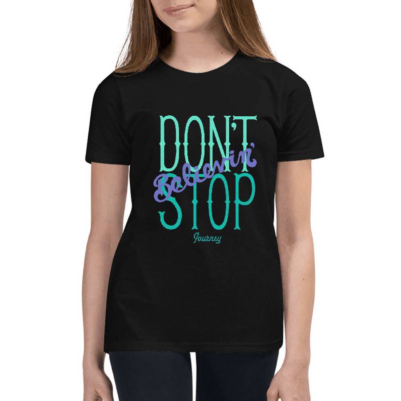 Journey Don't Stop Believing design artwork printed on Youth T-Shirt with latest DTF technology. Our new management team will place serving you. We offer best online shopping experience to our customers with 30 days return and exchange policy. Shop with confidence at T-funny.com