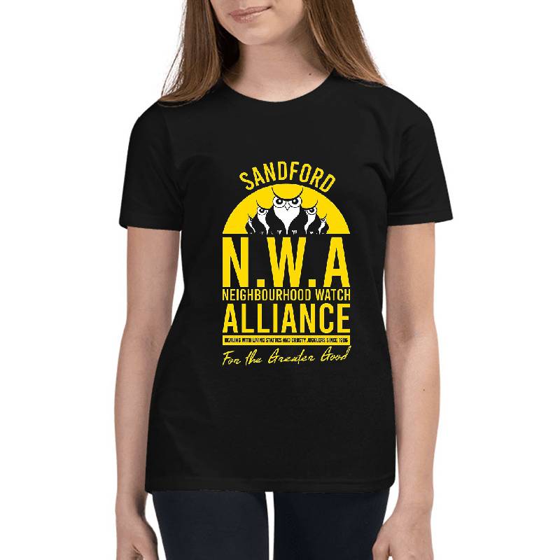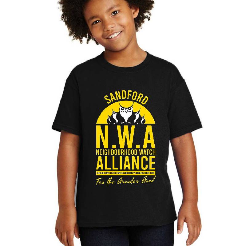 NWA Neighbourhood Watch Alliance design artwork printed on Youth T-Shirt with latest DTF technology. Our new management team will place serving you. We offer best online shopping experience to our customers with 30 days return and exchange policy. Shop with confidence at T-funny.com