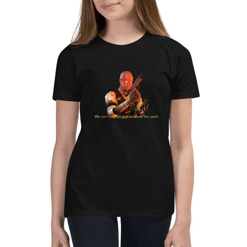 We can't expect god to do all the work design artwork printed on Youth T-Shirt with latest DTF technology. Our new management team will place serving you. We offer best online shopping experience to our customers with 30 days return and exchange policy. Shop with confidence at T-funny.com