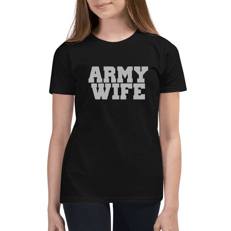 Army Wife design artwork printed on Youth T-Shirt with latest DTF technology. Our new management team will place serving you. We offer best online shopping experience to our customers with 30 days return and exchange policy. Shop with confidence at T-funny.com