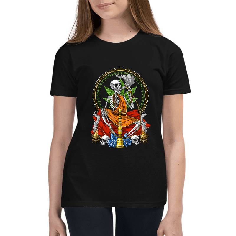 Skeleton Buddha Stoner design artwork printed on Youth T-Shirt with latest DTF technology. Our new management team will place serving you. We offer best online shopping experience to our customers with 30 days return and exchange policy. Shop with confidence at T-funny.com