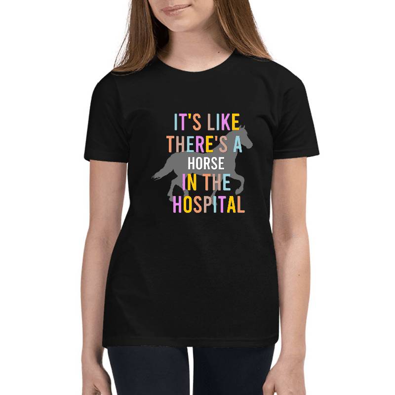 Horse In The Hospital design artwork printed on Youth T-Shirt with latest DTF technology. Our new management team will place serving you. We offer best online shopping experience to our customers with 30 days return and exchange policy. Shop with confidence at T-funny.com