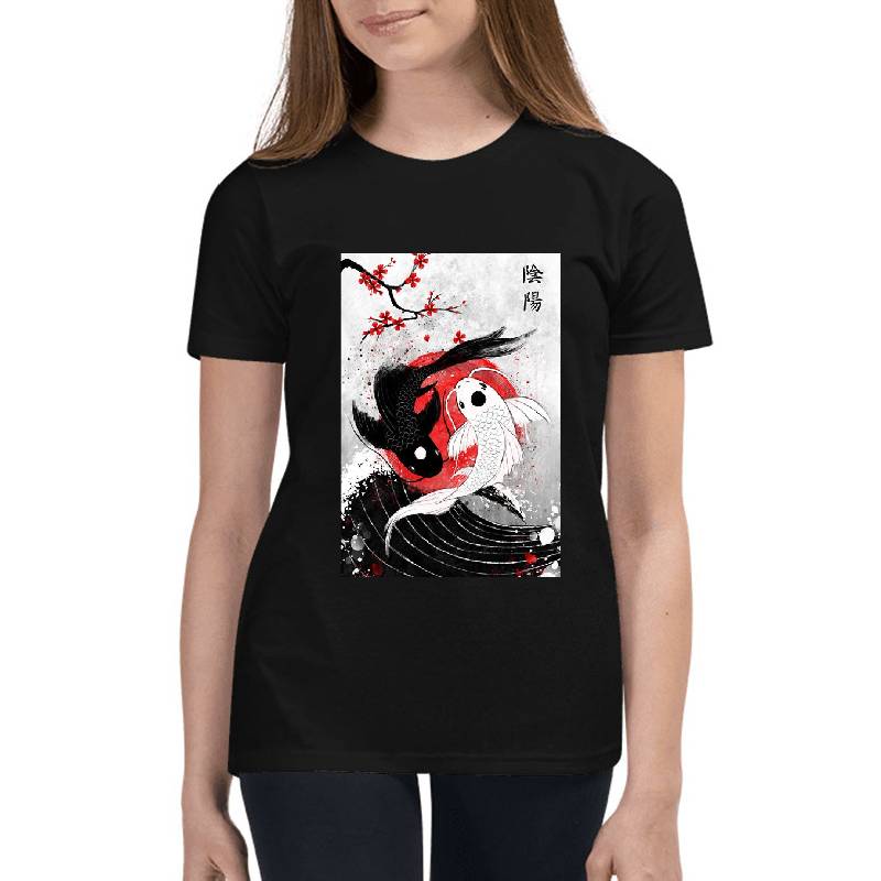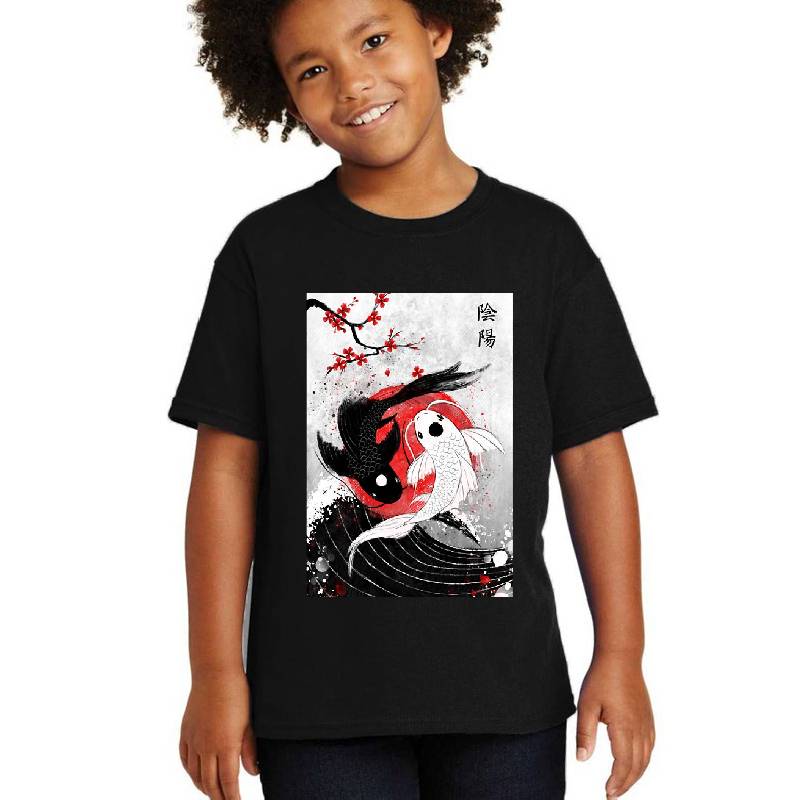 Koi fish - Yin Yang design artwork printed on Youth T-Shirt with latest DTF technology. Our new management team will place serving you. We offer best online shopping experience to our customers with 30 days return and exchange policy. Shop with confidence at T-funny.com
