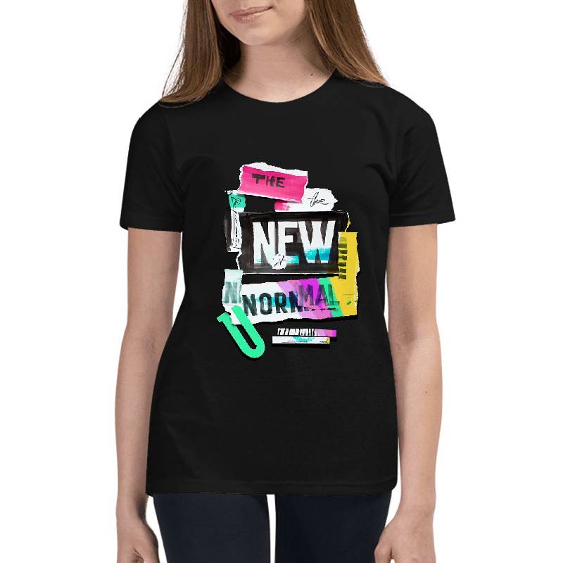 The New Normal design artwork printed on Youth T-Shirt with latest DTF technology. Our new management team will place serving you. We offer best online shopping experience to our customers with 30 days return and exchange policy. Shop with confidence at T-funny.com