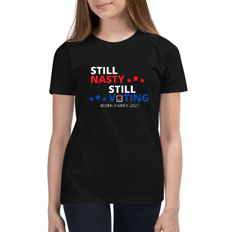 Still Nasty Still Voting Biden Harris 2020 Democratic Party Unisex T Shirt design artwork printed on Youth T-Shirt with latest DTF technology. Our new management team will place serving you. We offer best online shopping experience to our customers with 30 days return and exchange policy. Shop with confidence at T-funny.com