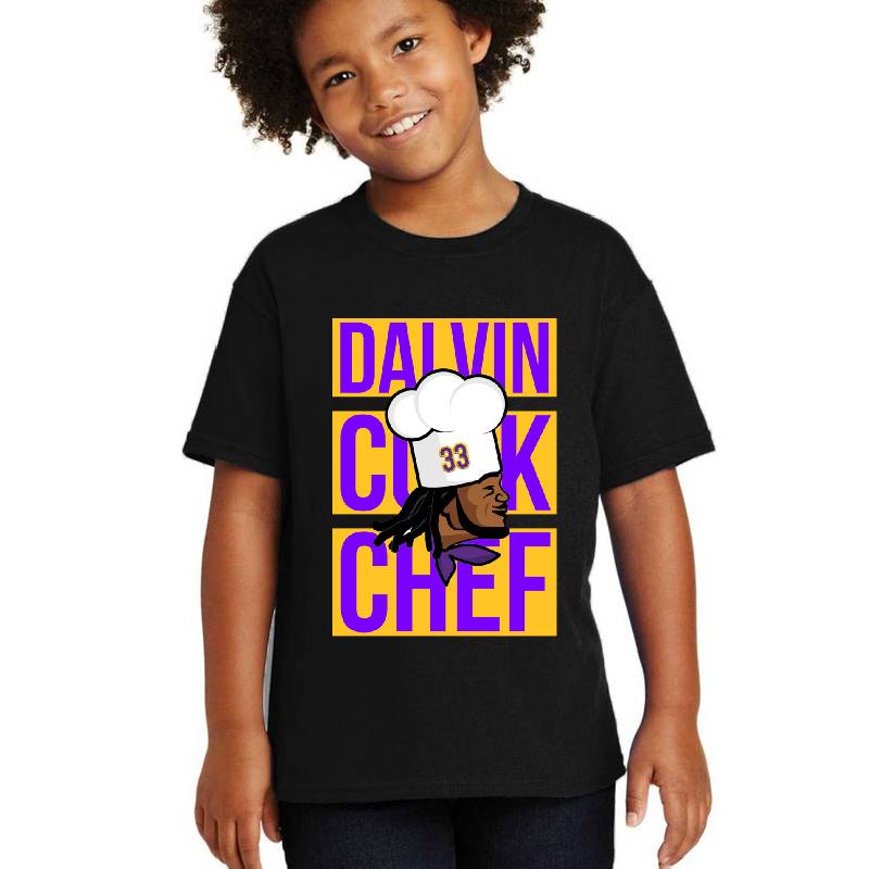 Dalvin Cook Chef design artwork printed on Youth T-Shirt with latest DTF technology. Our new management team will place serving you. We offer best online shopping experience to our customers with 30 days return and exchange policy. Shop with confidence at T-funny.com