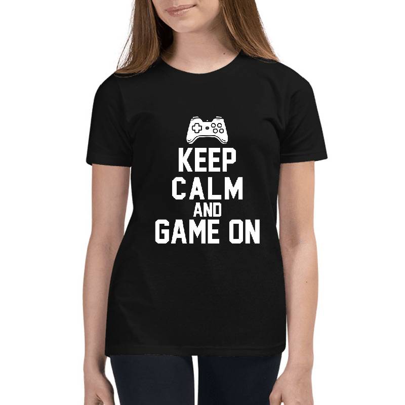 keep calm and game on, Funny Video games Lover gift, Game Quote design artwork printed on Youth T-Shirt with latest DTF technology. Our new management team will place serving you. We offer best online shopping experience to our customers with 30 days return and exchange policy. Shop with confidence at T-funny.com