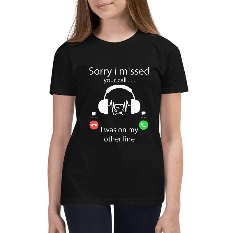 Funny Humor Gaming Lover Headset Sorry i missed your call i was on my other line design artwork printed on Youth T-Shirt with latest DTF technology. Our new management team will place serving you. We offer best online shopping experience to our customers with 30 days return and exchange policy. Shop with confidence at T-funny.com
