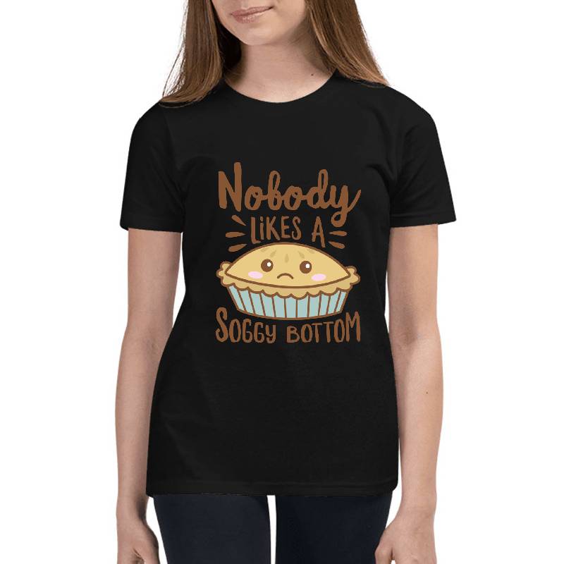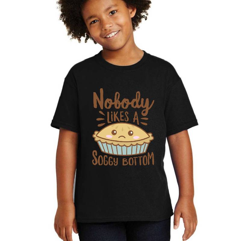 Nobody Likes A Soggy Bottom Cartoon Pie design artwork printed on Youth T-Shirt with latest DTF technology. Our new management team will place serving you. We offer best online shopping experience to our customers with 30 days return and exchange policy. Shop with confidence at T-funny.com