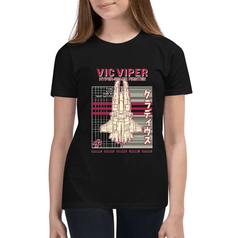 Hyper Space Fighter Vic Viper design artwork printed on Youth T-Shirt with latest DTF technology. Our new management team will place serving you. We offer best online shopping experience to our customers with 30 days return and exchange policy. Shop with confidence at T-funny.com