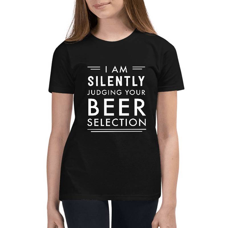 I am silently judging your beer selection design artwork printed on Youth T-Shirt with latest DTF technology. Our new management team will place serving you. We offer best online shopping experience to our customers with 30 days return and exchange policy. Shop with confidence at T-funny.com