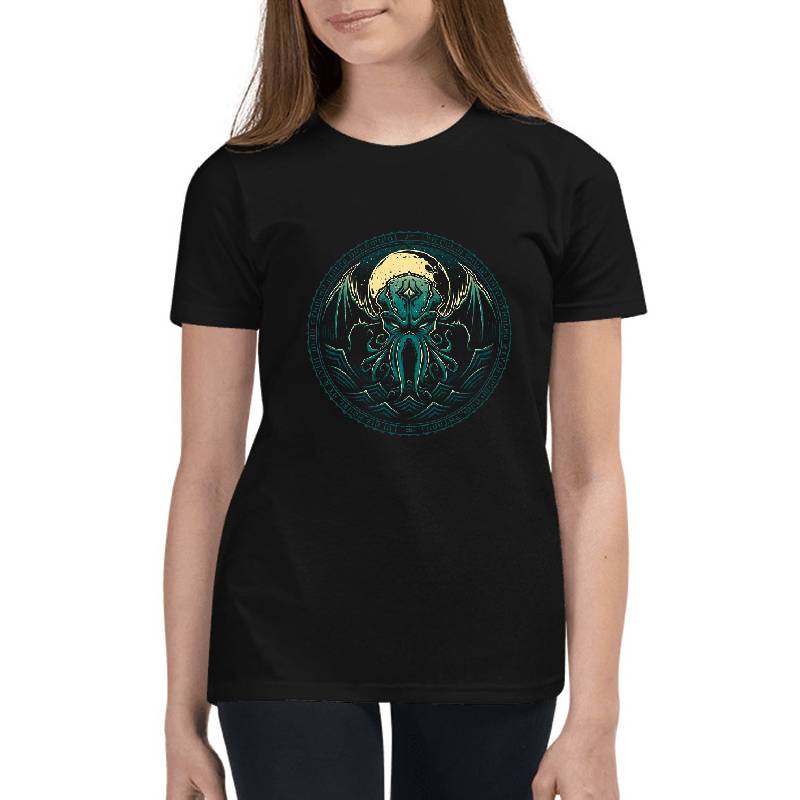 Cthulhu Lives design artwork printed on Youth T-Shirt with latest DTF technology. Our new management team will place serving you. We offer best online shopping experience to our customers with 30 days return and exchange policy. Shop with confidence at T-funny.com