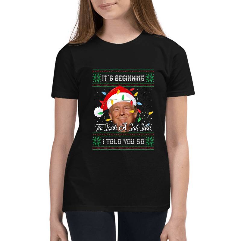 It's Beginning To Look A Lot Like I Told You So Trump Christmas design artwork printed on Youth T-Shirt with latest DTF technology. Our new management team will place serving you. We offer best online shopping experience to our customers with 30 days return and exchange policy. Shop with confidence at T-funny.com