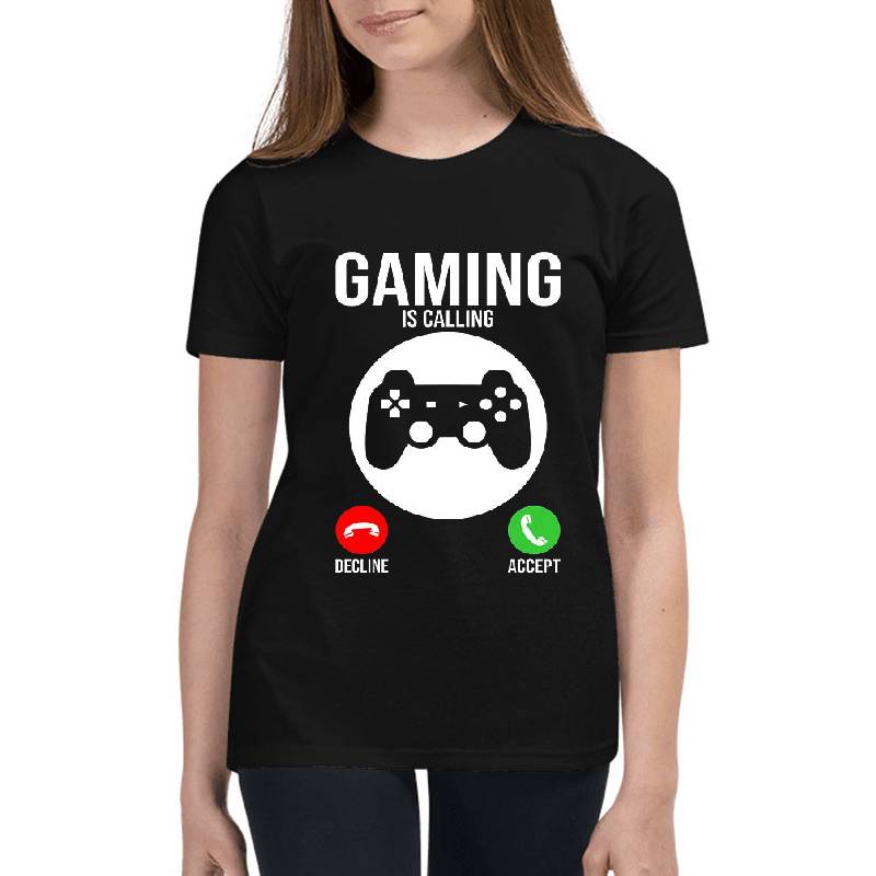 Gaming is calling design artwork printed on Youth T-Shirt with latest DTF technology. Our new management team will place serving you. We offer best online shopping experience to our customers with 30 days return and exchange policy. Shop with confidence at T-funny.com