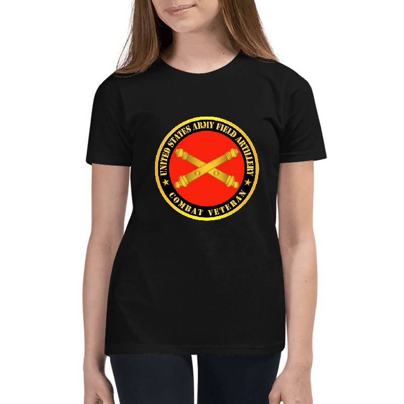 Army - US Army Field Artillery Combat Veteran w Branch design artwork printed on Youth T-Shirt with latest DTF technology. Our new management team will place serving you. We offer best online shopping experience to our customers with 30 days return and exchange policy. Shop with confidence at T-funny.com