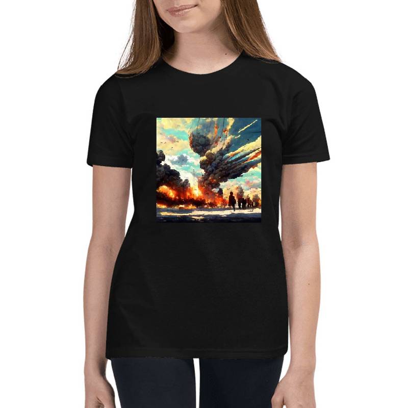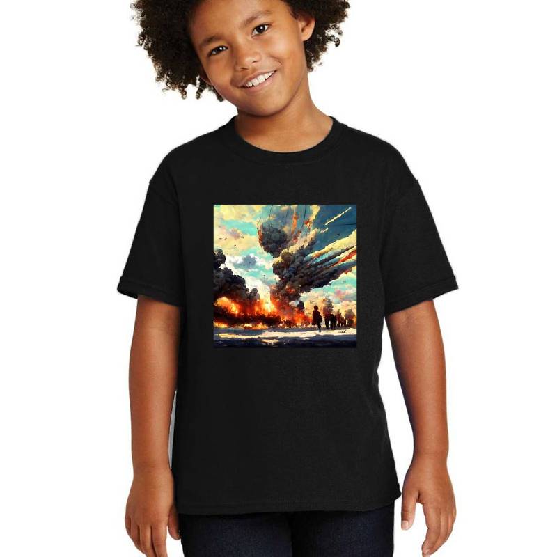 Epic explosion smoke plume during war design artwork printed on Youth T-Shirt with latest DTF technology. Our new management team will place serving you. We offer best online shopping experience to our customers with 30 days return and exchange policy. Shop with confidence at T-funny.com