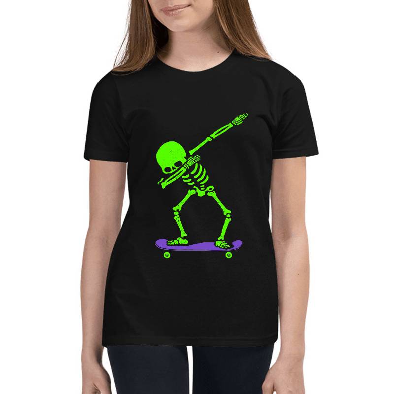 Halloween Dabbing Skeleton Skateboard Dab Skate Glow design artwork printed on Youth T-Shirt with latest DTF technology. Our new management team will place serving you. We offer best online shopping experience to our customers with 30 days return and exchange policy. Shop with confidence at T-funny.com