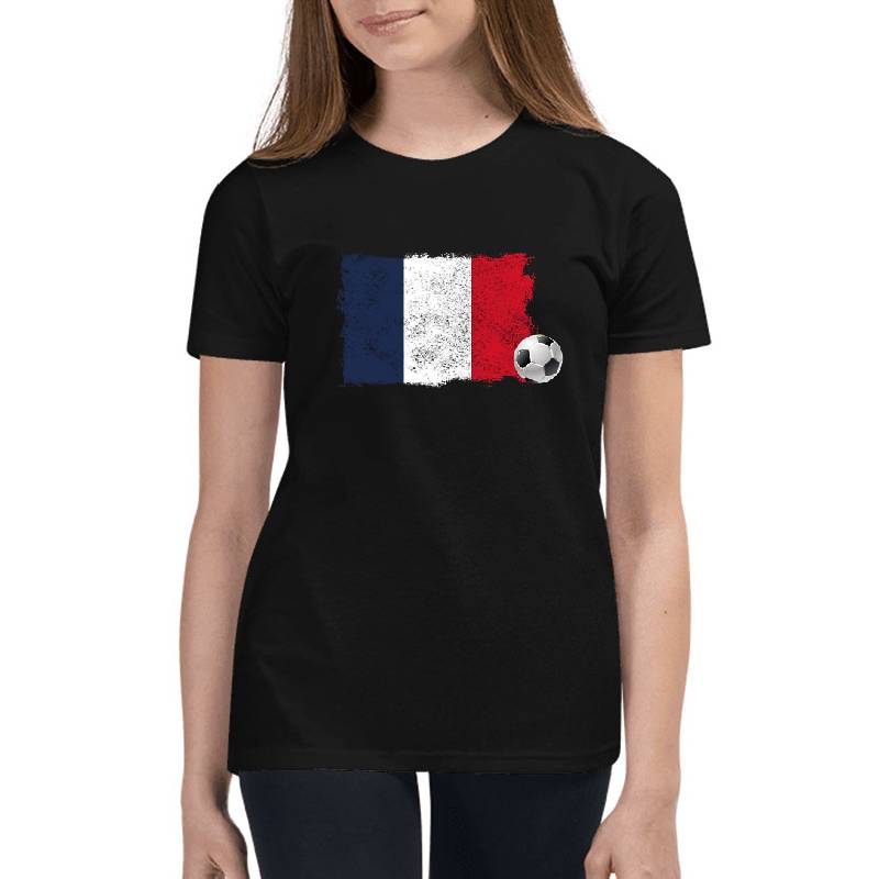 French flag football, France design artwork printed on Youth T-Shirt with latest DTF technology. Our new management team will place serving you. We offer best online shopping experience to our customers with 30 days return and exchange policy. Shop with confidence at T-funny.com