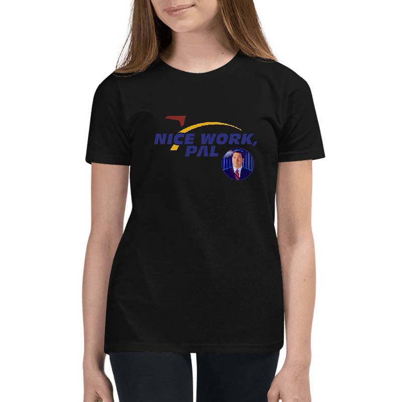 Nice Work, Pal (w Patrick) design artwork printed on Youth T-Shirt with latest DTF technology. Our new management team will place serving you. We offer best online shopping experience to our customers with 30 days return and exchange policy. Shop with confidence at T-funny.com