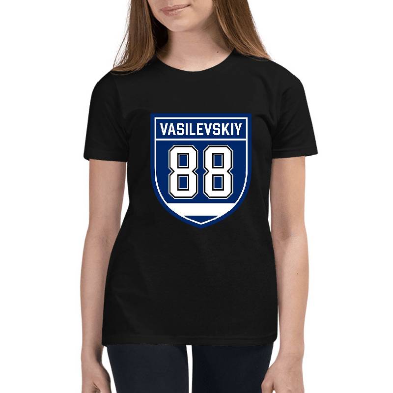 Vasilevskiy #88 emblem design artwork printed on Youth T-Shirt with latest DTF technology. Our new management team will place serving you. We offer best online shopping experience to our customers with 30 days return and exchange policy. Shop with confidence at T-funny.com