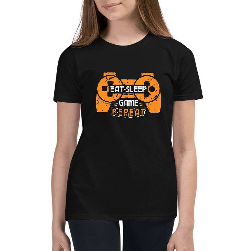 eat sleep game neon design artwork printed on Youth T-Shirt with latest DTF technology. Our new management team will place serving you. We offer best online shopping experience to our customers with 30 days return and exchange policy. Shop with confidence at T-funny.com