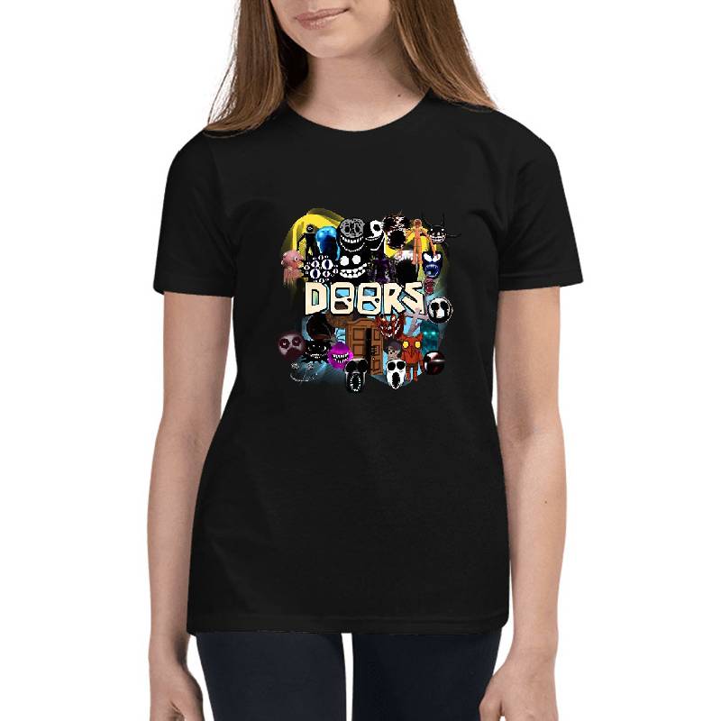 Doors All the Entities New Doors Game Update design artwork printed on Youth T-Shirt with latest DTF technology. Our new management team will place serving you. We offer best online shopping experience to our customers with 30 days return and exchange policy. Shop with confidence at T-funny.com
