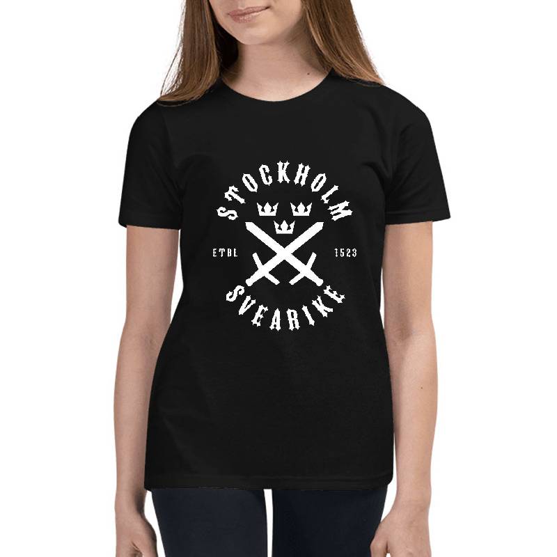 Svearike, Stockholm Patch design artwork printed on Youth T-Shirt with latest DTF technology. Our new management team will place serving you. We offer best online shopping experience to our customers with 30 days return and exchange policy. Shop with confidence at T-funny.com