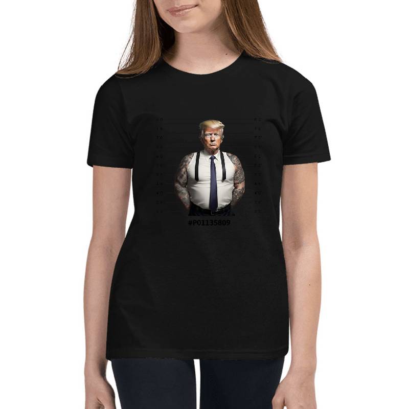 donald trump mugshot design artwork printed on Youth T-Shirt with latest DTF technology. Our new management team will place serving you. We offer best online shopping experience to our customers with 30 days return and exchange policy. Shop with confidence at T-funny.com