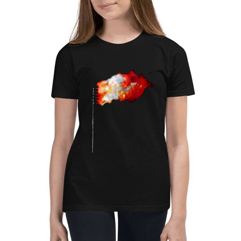 Burning Flag design artwork printed on Youth T-Shirt with latest DTF technology. Our new management team will place serving you. We offer best online shopping experience to our customers with 30 days return and exchange policy. Shop with confidence at T-funny.com