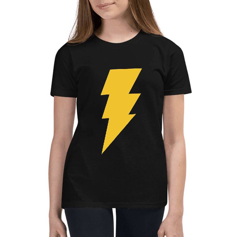 Shazam Logo - DC Comics design artwork printed on Youth T-Shirt with latest DTF technology. Our new management team will place serving you. We offer best online shopping experience to our customers with 30 days return and exchange policy. Shop with confidence at T-funny.com