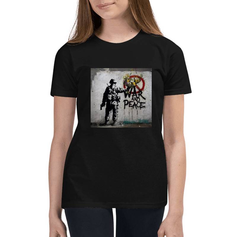 Bansky Street Art solider army peace design artwork printed on Youth T-Shirt with latest DTF technology. Our new management team will place serving you. We offer best online shopping experience to our customers with 30 days return and exchange policy. Shop with confidence at T-funny.com