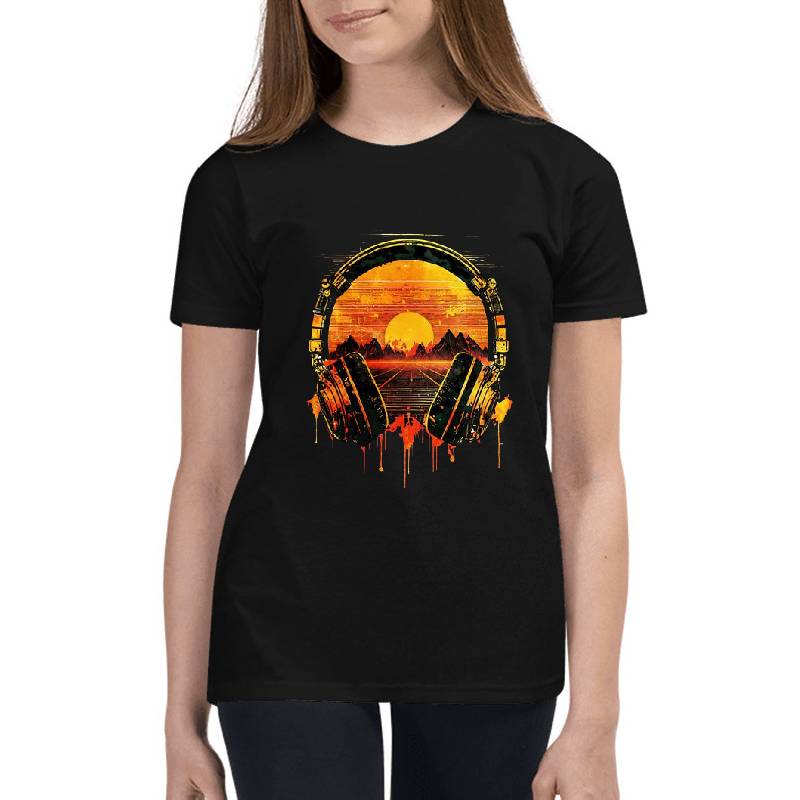 Synthwave Sunset with Headphones design artwork printed on Youth T-Shirt with latest DTF technology. Our new management team will place serving you. We offer best online shopping experience to our customers with 30 days return and exchange policy. Shop with confidence at T-funny.com