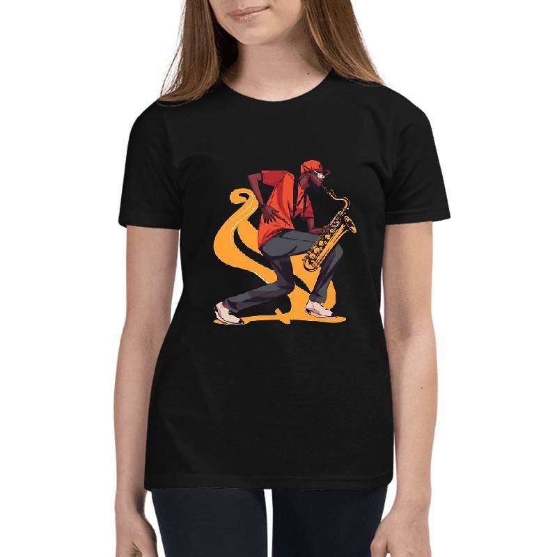 The Masterful Duo of Dance and Saxophone design artwork printed on Youth T-Shirt with latest DTF technology. Our new management team will place serving you. We offer best online shopping experience to our customers with 30 days return and exchange policy. Shop with confidence at T-funny.com