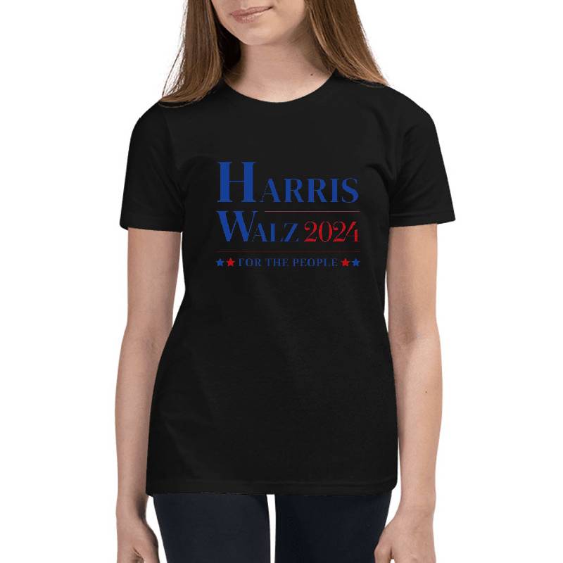 Harris Walz 2024 design artwork printed on Youth T-Shirt with latest DTF technology. Our new management team will place serving you. We offer best online shopping experience to our customers with 30 days return and exchange policy. Shop with confidence at T-funny.com