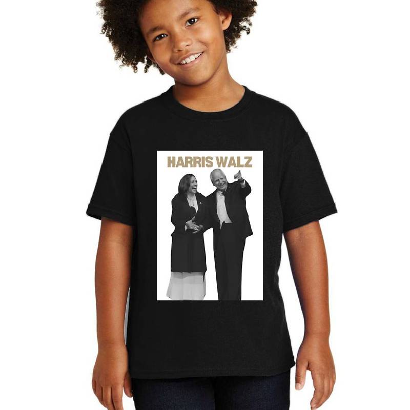 Harris Walz 2024 design artwork printed on Youth T-Shirt with latest DTF technology. Our new management team will place serving you. We offer best online shopping experience to our customers with 30 days return and exchange policy. Shop with confidence at T-funny.com