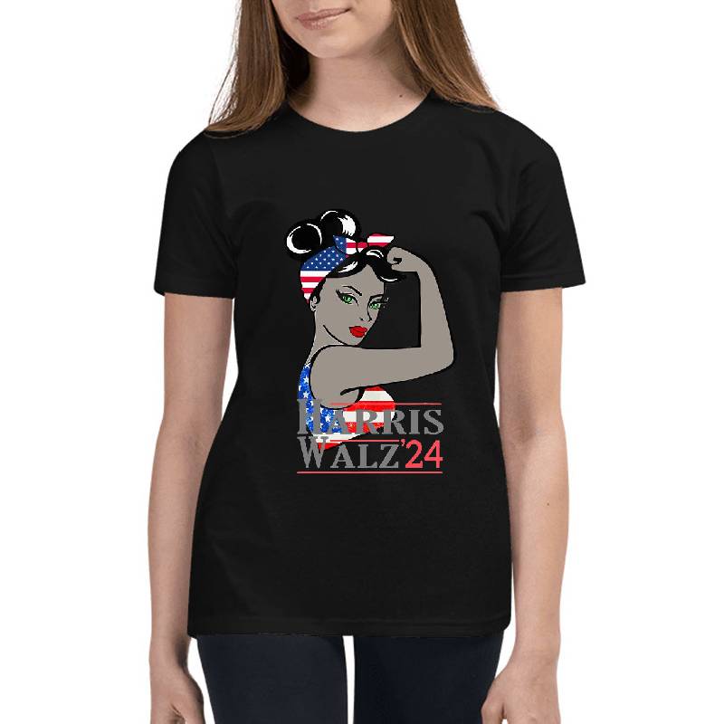 Harris Waltz 2024 power design artwork printed on Youth T-Shirt with latest DTF technology. Our new management team will place serving you. We offer best online shopping experience to our customers with 30 days return and exchange policy. Shop with confidence at T-funny.com