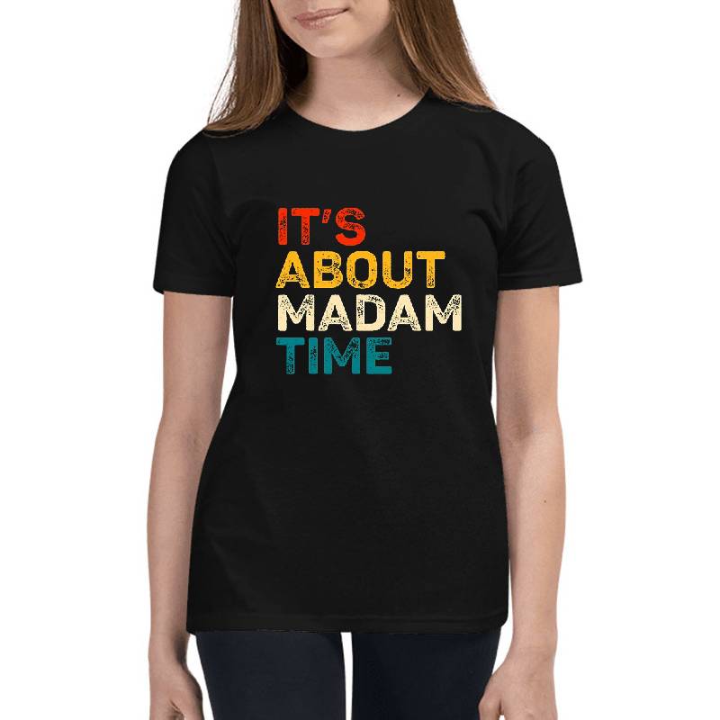 It's About Madam Time Kamala Harris Election 2024 President design artwork printed on Youth T-Shirt with latest DTF technology. Our new management team will place serving you. We offer best online shopping experience to our customers with 30 days return and exchange policy. Shop with confidence at T-funny.com