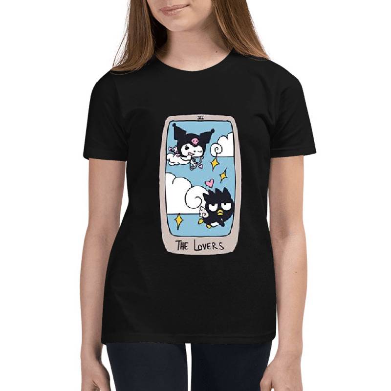 Sanrio Tarot “The Lovers” Kuromi and Badtz design artwork printed on Youth T-Shirt with latest DTF technology. Our new management team will place serving you. We offer best online shopping experience to our customers with 30 days return and exchange policy. Shop with confidence at T-funny.com