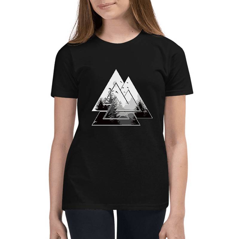 Valknut Symbol design artwork printed on Youth T-Shirt with latest DTF technology. Our new management team will place serving you. We offer best online shopping experience to our customers with 30 days return and exchange policy. Shop with confidence at T-funny.com