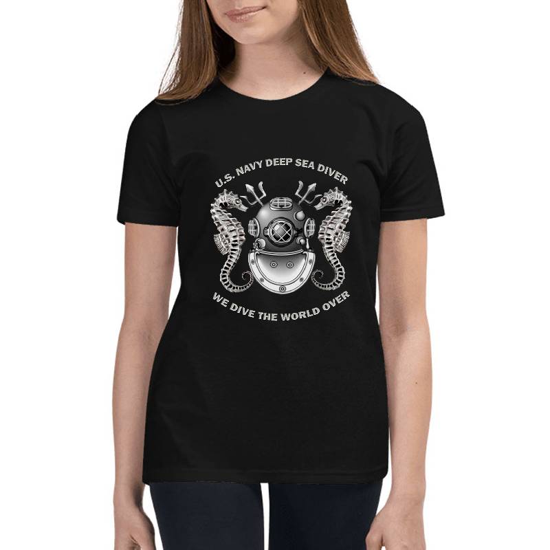 Us Navy Deep Sea Diver Badge We Dive The World Over design artwork printed on Youth T-Shirt with latest DTF technology. Our new management team will place serving you. We offer best online shopping experience to our customers with 30 days return and exchange policy. Shop with confidence at T-funny.com