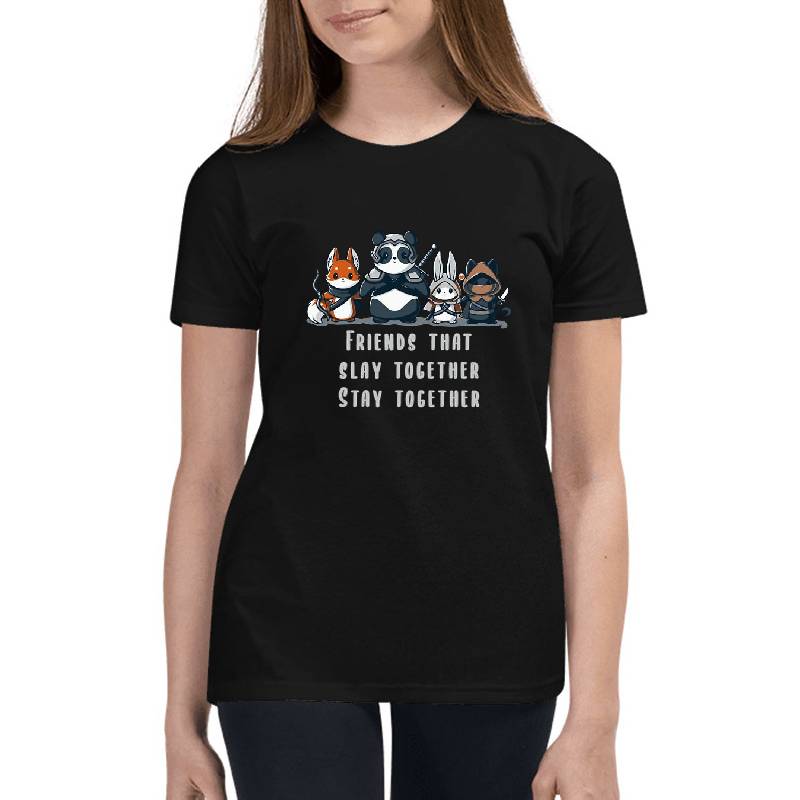Friends who slay together, stay together design artwork printed on Youth T-Shirt with latest DTF technology. Our new management team will place serving you. We offer best online shopping experience to our customers with 30 days return and exchange policy. Shop with confidence at T-funny.com