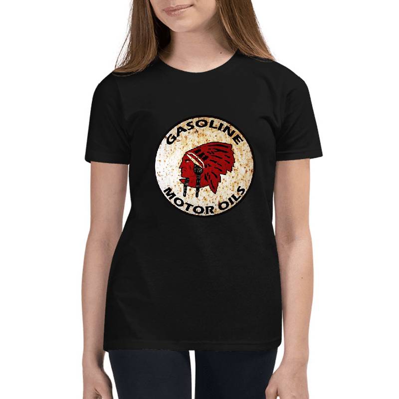 Red Indian Gasoline vintage sign reproduction rusted vers. design artwork printed on Youth T-Shirt with latest DTF technology. Our new management team will place serving you. We offer best online shopping experience to our customers with 30 days return and exchange policy. Shop with confidence at T-funny.com