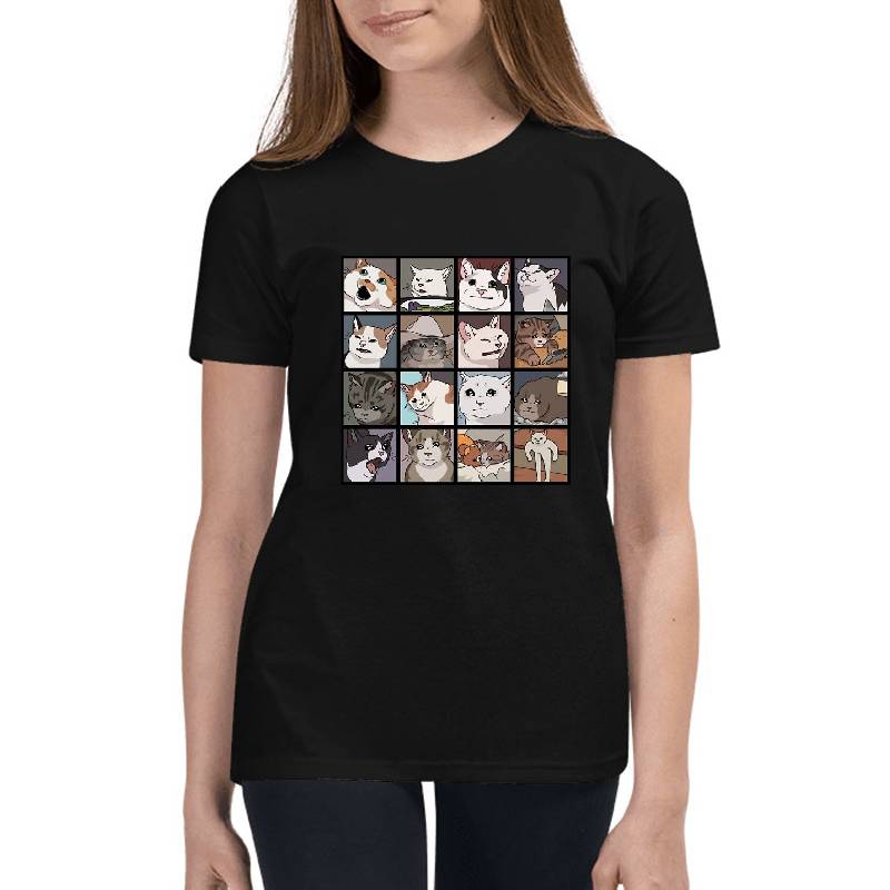 Meme Cats 2.0 design artwork printed on Youth T-Shirt with latest DTF technology. Our new management team will place serving you. We offer best online shopping experience to our customers with 30 days return and exchange policy. Shop with confidence at T-funny.com