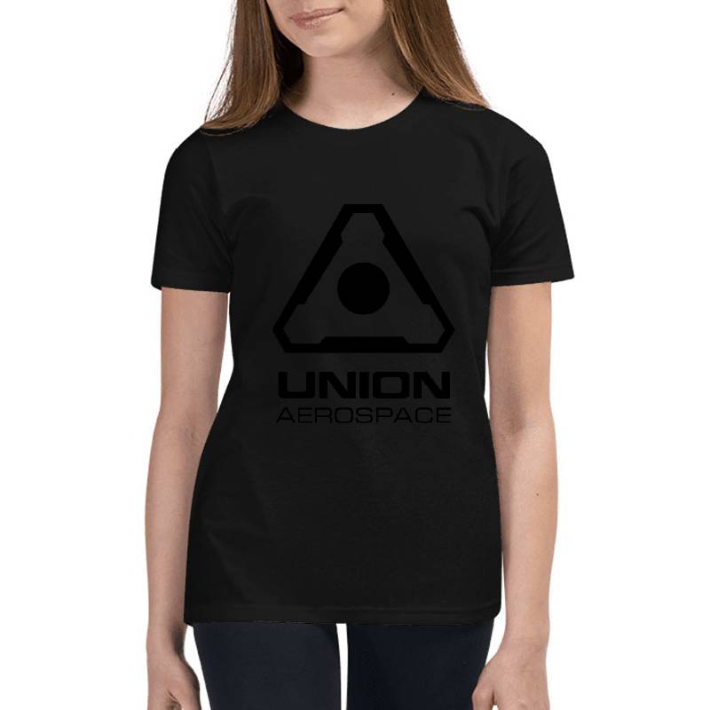 Union Aerospace - Black insignia design artwork printed on Youth T-Shirt with latest DTF technology. Our new management team will place serving you. We offer best online shopping experience to our customers with 30 days return and exchange policy. Shop with confidence at T-funny.com