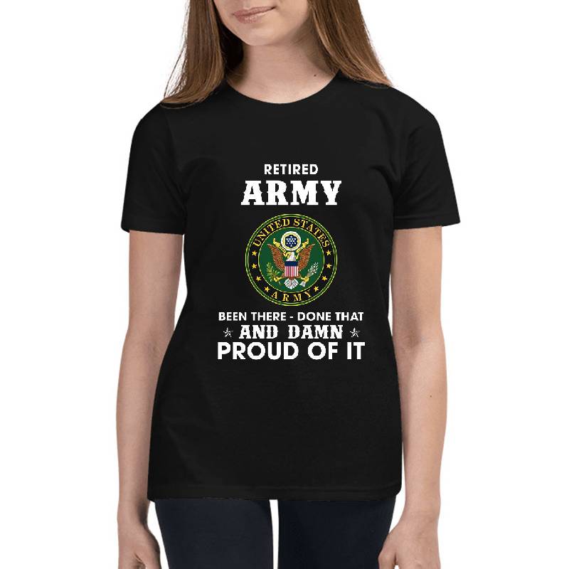 Retired Army design artwork printed on Youth T-Shirt with latest DTF technology. Our new management team will place serving you. We offer best online shopping experience to our customers with 30 days return and exchange policy. Shop with confidence at T-funny.com