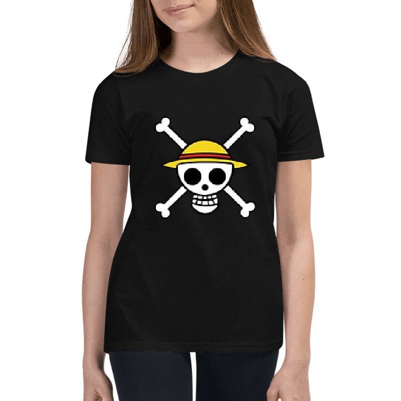 straw hat pirates logo design artwork printed on Youth T-Shirt with latest DTF technology. Our new management team will place serving you. We offer best online shopping experience to our customers with 30 days return and exchange policy. Shop with confidence at T-funny.com